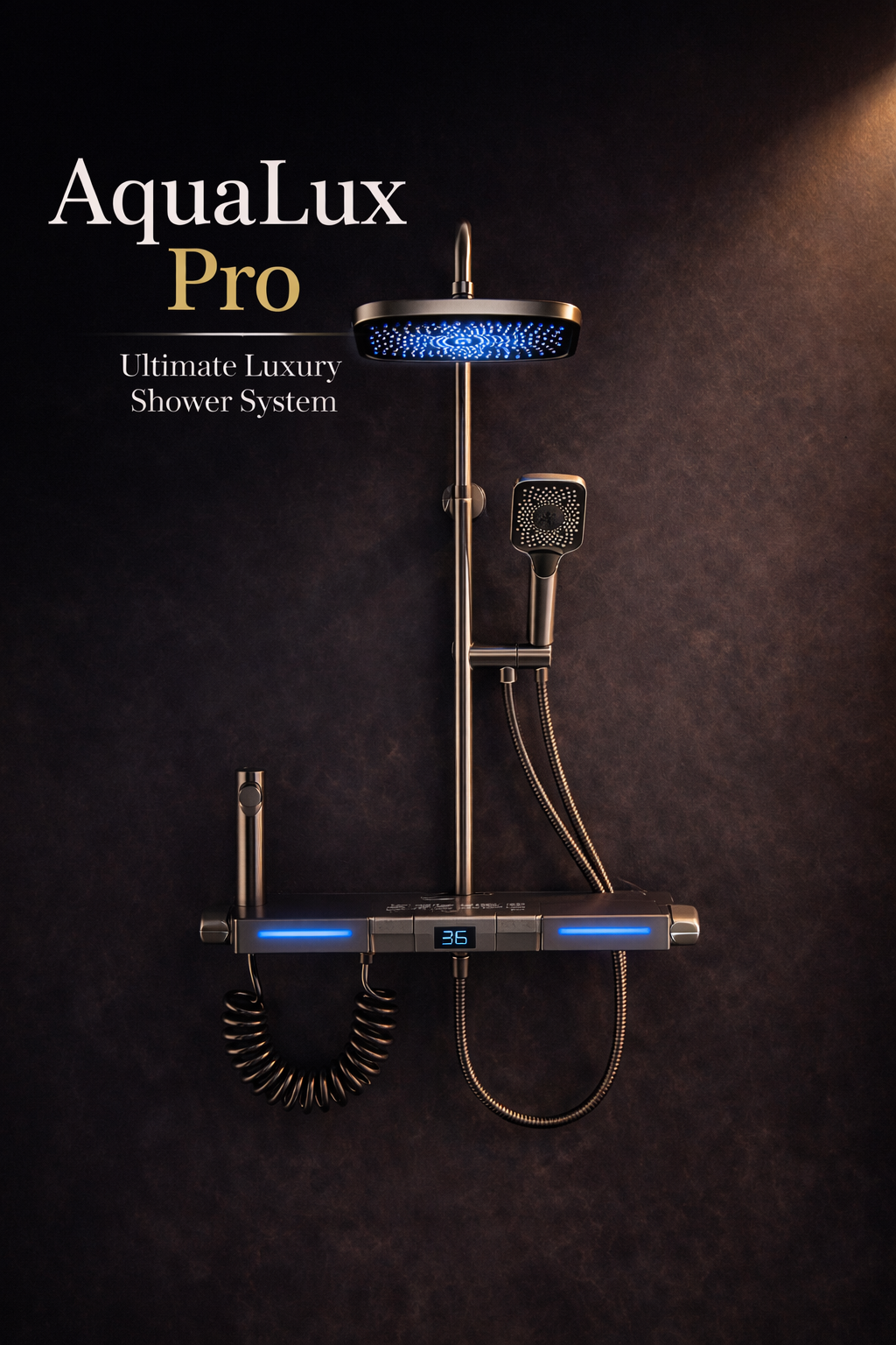 SISTEMA DE DUCHA PREMIUM CON LUZ AMBIENTAL Y PANTALLA DIGITAL